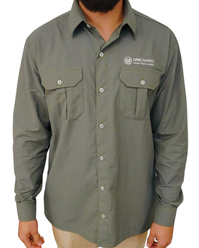 Camisa DESTROYT confeccionada em tecidos poliamida produzidos com o fio UV Protection®. Faz parte da família de fios inteligentes da Rhodia®/Solvay®. Os fios de poliamida 6.6 UV Protection® oferecem, se utilizados de maneira correta, excelente proteção aos raios UV-A e UV-B, protegendo a pele durante a exposição ao sol. Esta peça é ideal para manter-se confortável durante as atividades ao ar livre, que oferece proteção conta os raios solares . Além disso, possui fechamento em botão, com dois bolsos frontais, tela para respiração na parte traseira da camisa .